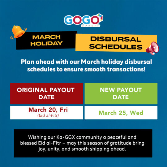 With GoGo Xpress, you can earn and easily transact payments with our FREE Cash-on-Delivery service.