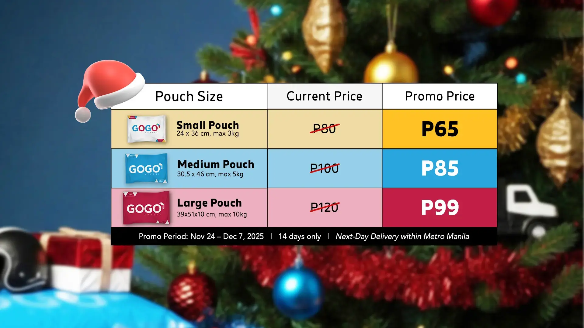 From November 24 to December 7, 2025, enjoy lower rates across all pouch sizes – perfect for Christmas shop drops, gift sending, and peak season rush orders.